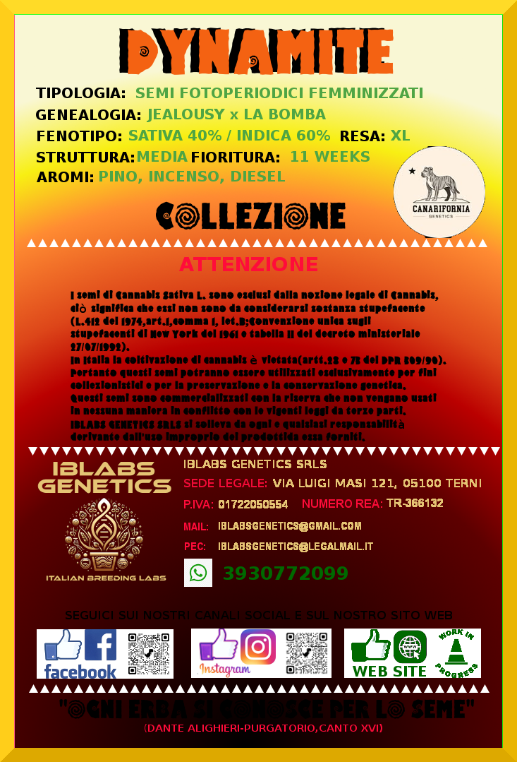 Therefore, these seeds may be used exclusively forcollection purposes and for genetic preservation and conservation.These seeds are marketed with the reservation that they will not be usedin any way that conflicts with current laws by third parties.IBLABS GENETICS SRLS disclaims any and all liabilityresulting from the improper use of the products it supplies.